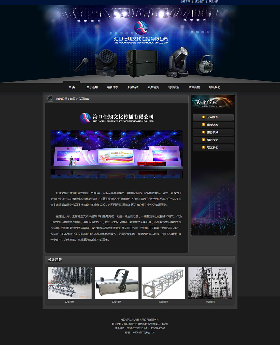 任翔文化传播有限公司创立于2009年,专业从事舞美舞台工程和专业视听设备租赁服务。公司一直致力于为客户提供一流的舞台视听效果为宗旨,注重工程建设的不断创新,凭借丰富的工程经验和严谨的工作态度与诸多市场活动策划公司保持着密切的合作关系,为不同行业.领域.地区的客户提供专业的会展服务。