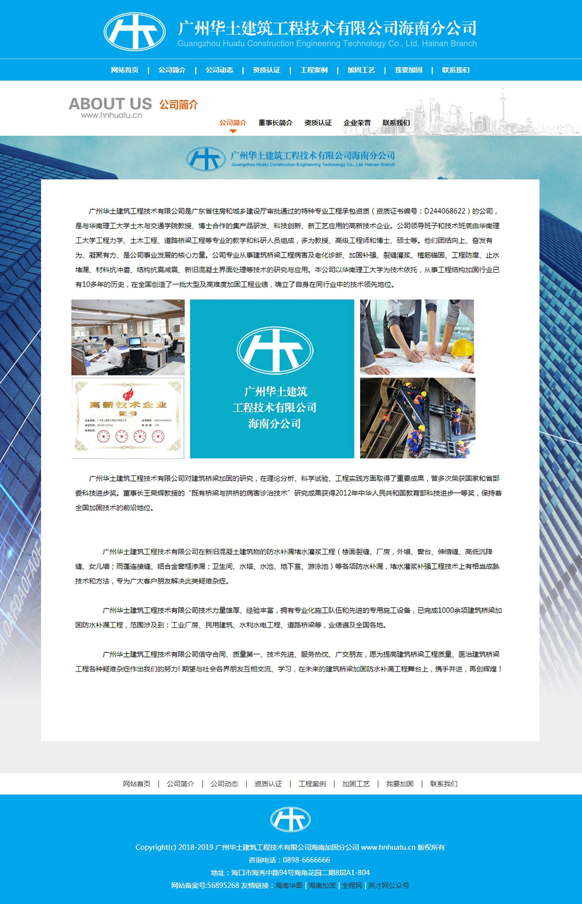 广州华土建筑工程技术有限公司是广东省住房和城乡建设厅审批通过的特种专业工程承包资质(资质证书编号:D244068622)的公司,是与华南理工大学土木与交通学院教授、博士合作的集产品研发、科技创新、新工艺应用的高新技术企业。公司领导班子和技术班底由华南理工大学工程力学、土木工程、道路桥梁工程等专业的教学和科研人员组成