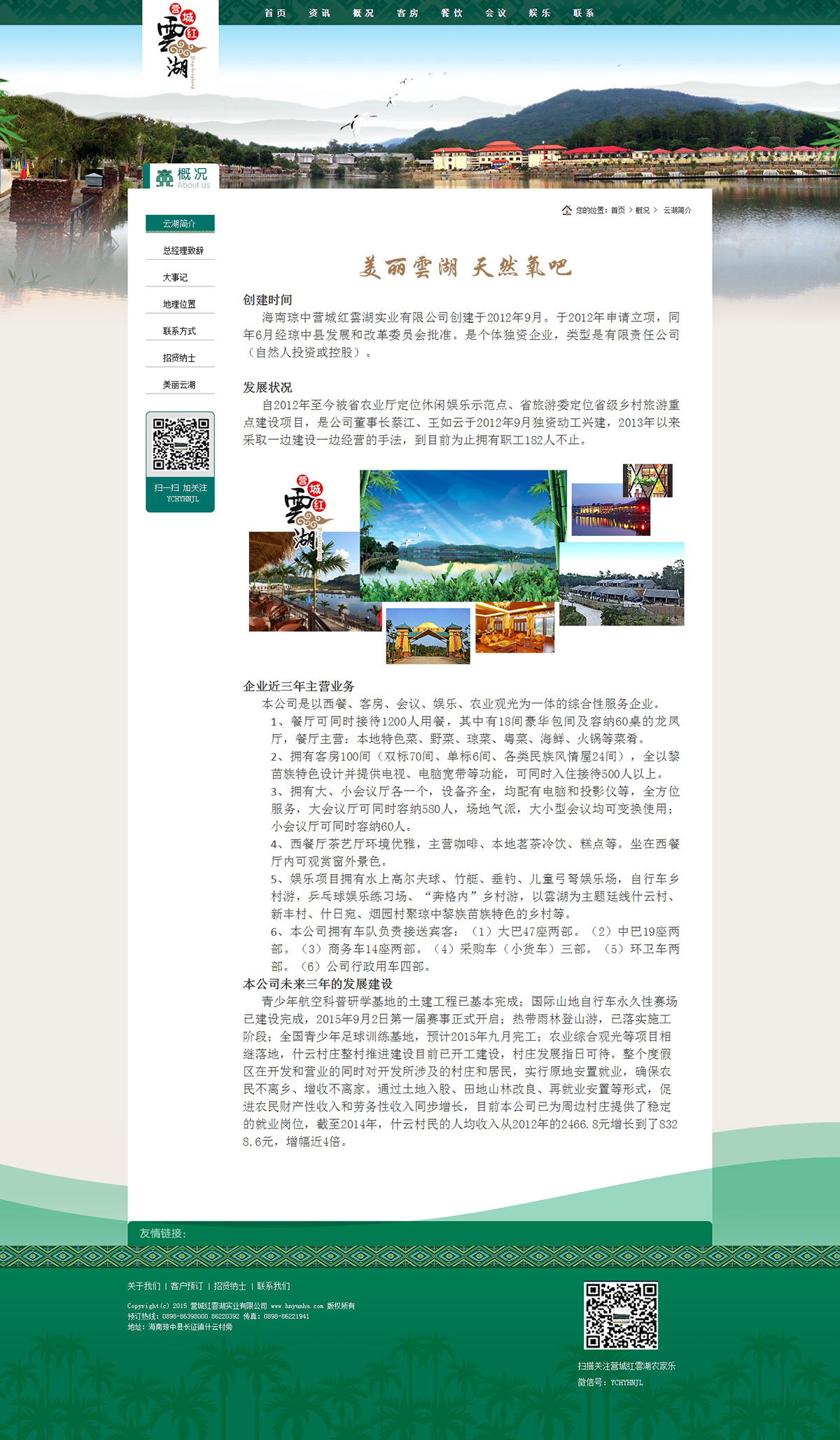 海南琼中营城红雲湖实业有限公司创建于2012年9月。于2012年申请立项,同年6月经琼中县发展和改革委员会批准。是个体独资企业,类型是有限责任公司(自然人投资或控股)。
