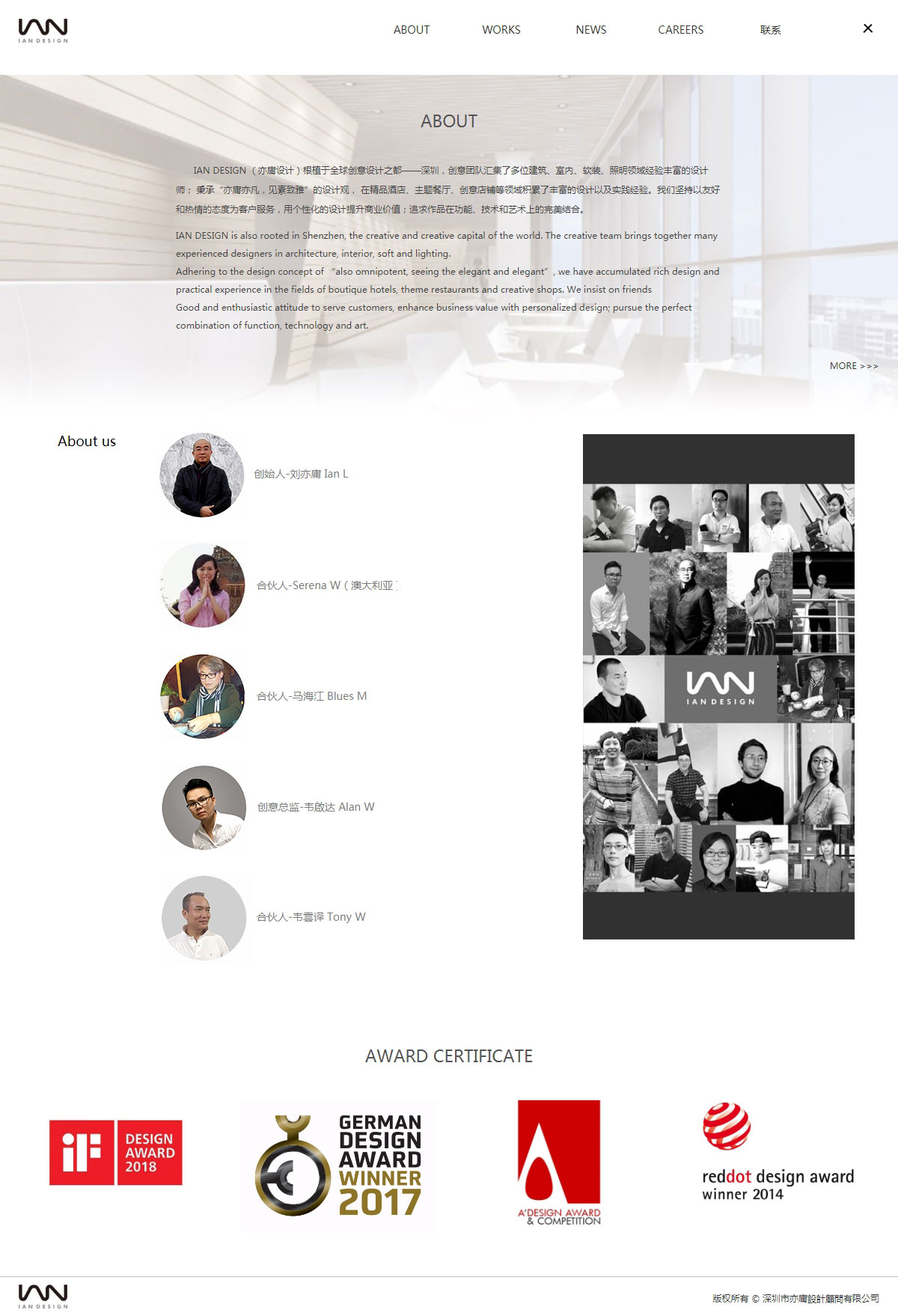 IAN DESIGN (亦庸设计)根植于全球创意设计之都——深圳,创意团队汇集了多位建筑、室内、软装、照明领域经验丰富的设计师; 秉承“亦庸亦凡,见素致雅”的设计观, 在精品酒店、主题餐厅、创意店铺等领域积累了丰富的设计以及实践经验。我们坚持以友好和热情的态度为客户服务,用个性化的设计提升商业价值;追求作品在功能、技术和艺术上的完美结合。